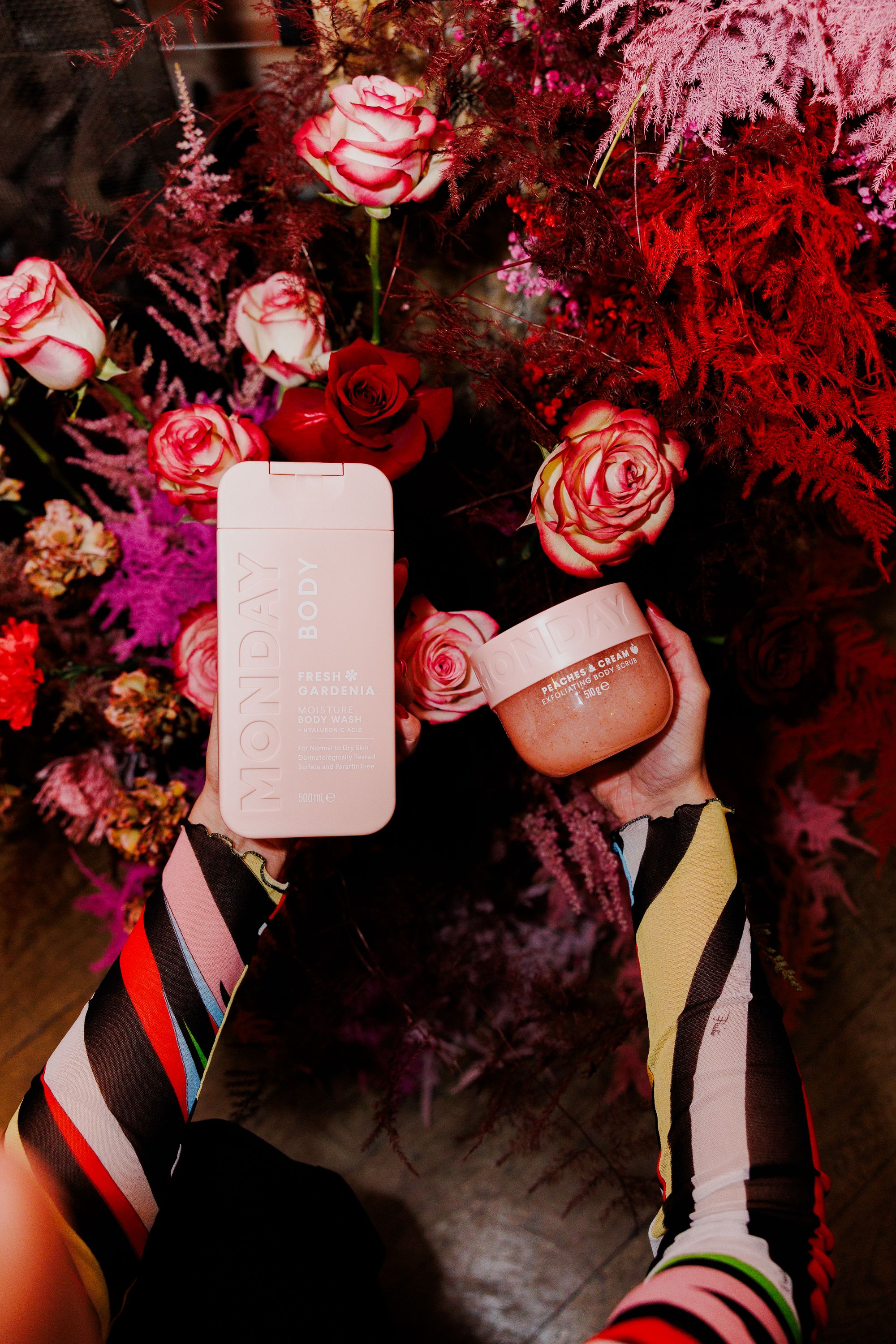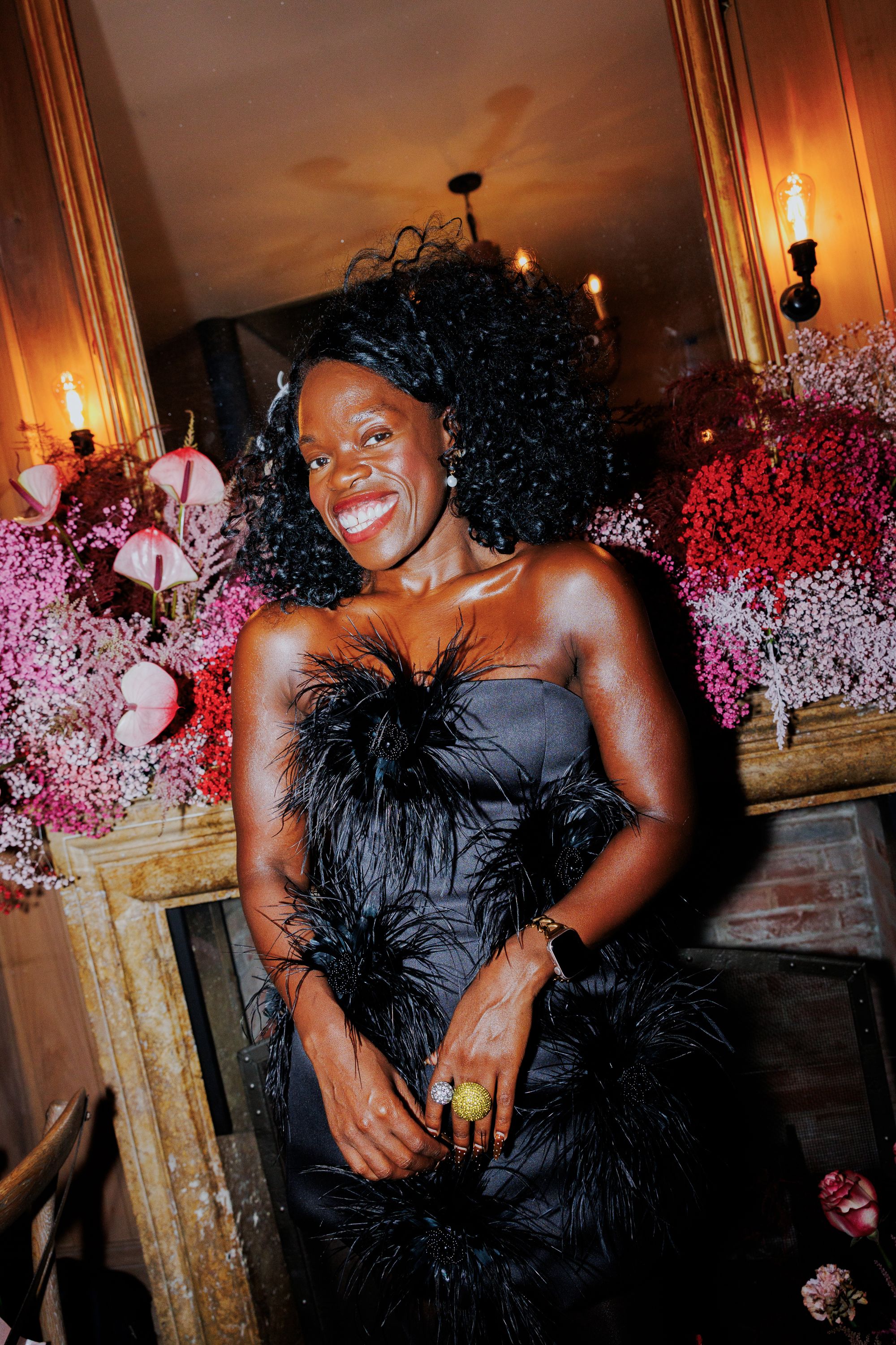 The evening wouldn’t have been complete without the incredible floral installation by @serv.world - soft pink roses perfectly complementing the chic rented outfits.