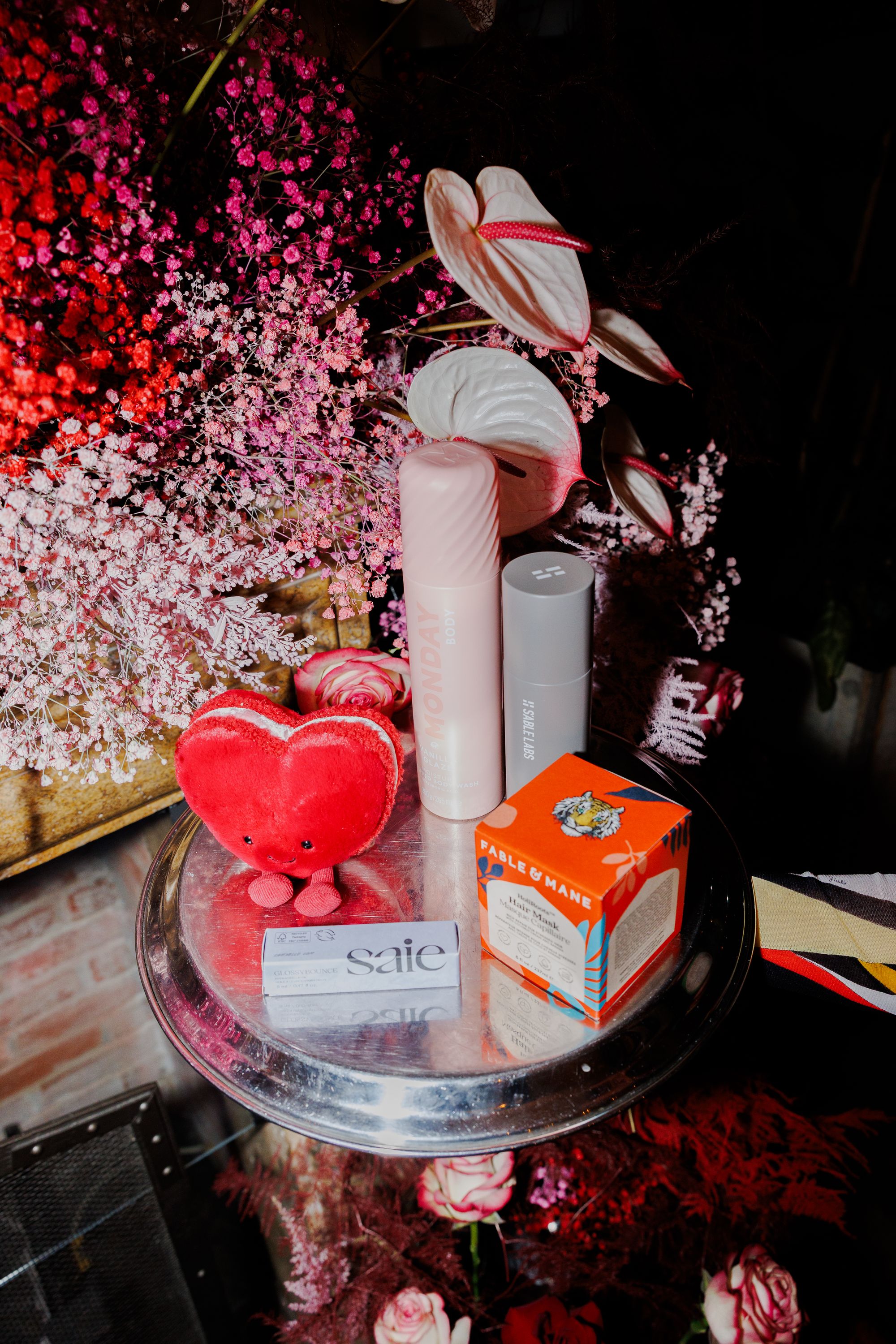 Sneak peek inside the Galentine’s-themed gift bag: from the cutest Jellycat keepsakes to self-care essentials from our friends at Fable & Mane, Monday, and S’ABLE Labs - with the finishing touch of a luminous Saie lip oil.